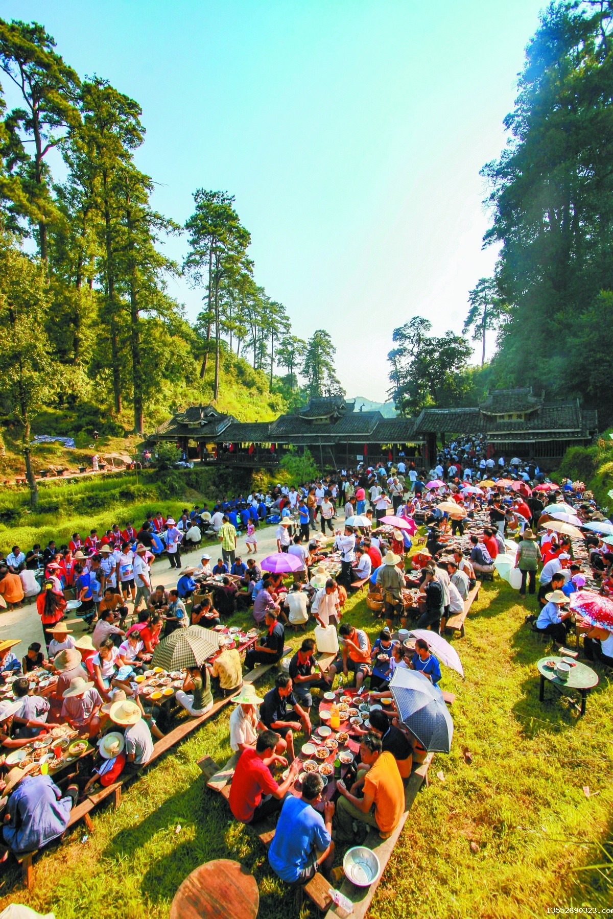 “百家宴从两座风雨桥之间一直摆到村口,有几百米长,周边数个村寨的侗族男女老少都会来地灵,有些隔壁乡镇,隔壁县份,甚至隔壁湖南省的人都会前来。通过长桌宴结识并结缘的未婚男女也不少,很多人都已经结婚生子了。”村里的老人说。