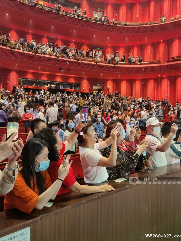 演出当天,上至耄耋之年的老人下至7、8岁的孩童纷至沓来,竞相争睹“新刘三姐“的风采,现场1200个座位座无虚席。年逾70岁的四川老戏迷刘阿姨拄着拐杖来看演出,她说自己是上个世纪60年代电影《刘三姐》的忠实粉丝,朗朗上口的广西山歌里有她最美好的青春记忆,今天来看《新刘三姐》既是为了欣赏演出,也是为了寻找年轻时的梦。演出之时,当熟悉的《多谢了》《山歌好比春江水》等经典旋律响起,台下立刻响起如潮水般的掌声。“好听!时尚!经典!“蓉城观众对《新刘三姐》的音乐给予充分肯定,并津津乐道于剧中乡村振兴的火热场景和淳朴善良的人物形象,高度评价《新刘三姐》在守正创新中走出了地方戏曲传承发展的新路子,让地方戏曲既有“经典味“,更有“时代情“。