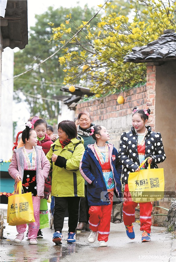今年69岁的周锡生和67岁的爱人何秋萍都是靖西村人,从小喜欢彩调。2010年,周锡生以广西彩调剧团职业编剧的身份回乡开展彩调现状普查,发现活跃在舞台上的彩调演员都是老年人,找不到一个年轻人的身影。当年,他和爱人决定在家乡创办老还童彩调剧团,出资近14万元采购服装道具和音响设备,开设少儿彩调培训班,每逢寒暑假和周末免费教小学生学习彩调。如今,该剧团已累计招收70多名4—12岁的少儿彩调演员,曾多次受邀到广西、上海等地表演。2019年,老还童彩调剧团被评为柳城县新时代文明实践中心未成年人彩调非遗文化传承基地。