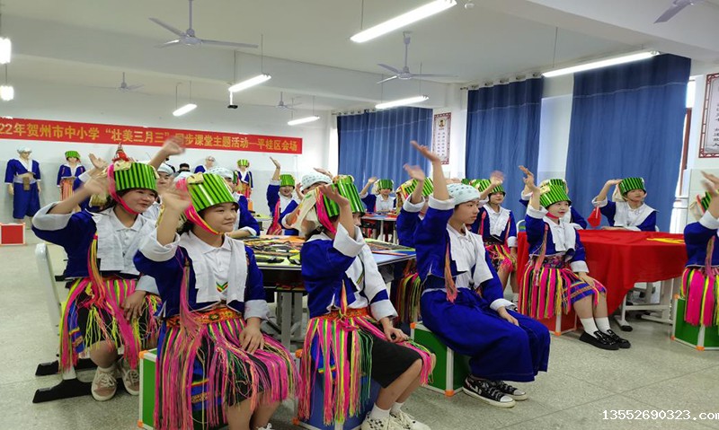 据悉,平桂区民族学校自办学以来就将民族团结进步教育的创建融入学校管理中,通过开展内容丰富、形式多样的民俗特色课程,如:竹竿舞、长鼓舞、多人板鞋、瑶绣、瑶歌、绘画等,让各族学生在活动中传承了优秀民族传统文化。此次“石榴花开成长路·喜迎壮乡三月三“实践系列活动,就是该校民族团结进步教育的一个体现。