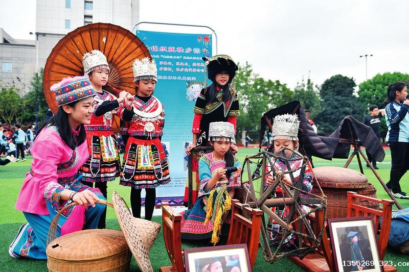在教育教学方面,加强民族教育与学科教学相结合,开发校本课程《广西少数民族与阅读》,教师组织学生查找有关的民族文字材料和本土民族文学阅读,让学生对身边的少数民族文化进行深入系统了解,在阅读中培养民族认同感和自豪感。同时,每年举办戏剧节,让各班孩子通过戏剧排练和表演的方式,在戏剧节中推出地方特色剧桂剧,促进广西本地传统文化的传承和发扬。“创建“壮锦社团,老师带领学生了解、学习壮锦艺术。