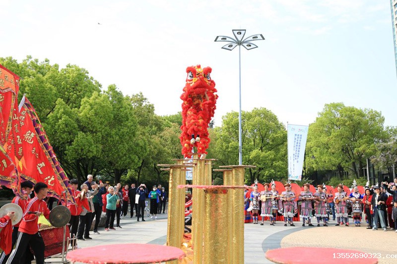 那坡壮族民歌《壮美春江水》、瑶族蝴蝶歌《瑶歌一唱亲上亲》、新民歌《春暖花开踏歌来》等广西民歌将汉口江滩变成了歌的海洋,仿佛把现场观众带到了“三月三”壮族歌圩的现场。壮族最古老的拨弦乐器天琴、京族特有乐器独弦琴等器乐表演唱节目,时而清亮悠扬,时而婉转悠长,引来游人纷纷注目倾听。国家级非遗项目彩调的经典剧目《刘三姐》唱响“山歌好比春江水”的优美旋律,国家级非遗项目桂剧的折子戏《打棍出箱》演员在箱子上展现“三进四出”的绝技,令人叹为观止之。湖北演艺人员带来的男子群舞《国风墨韵》和歌舞《汉绣》,生动展现了中华优秀传统文化历久弥新、传承不息的力量。