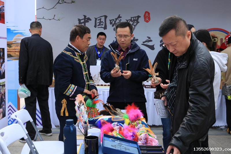 六堡茶、油茶、绣球、麽乜……活动现场数十个展位上摆满了种类繁多、五彩缤纷的广西非遗精品、旅游产品,让人目不暇接。现场装置以青绿山水为底色,缀以花山岩画图样、壮锦纹饰、风景大片等广西元素,吸引不少往来行人拍照打卡。