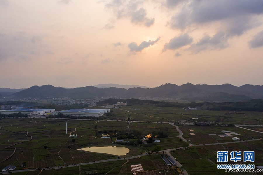 无人机航拍的横县校椅镇榃汶村茉莉花盆栽和蔬菜育苗扶贫示范园。新华网 刘君摄