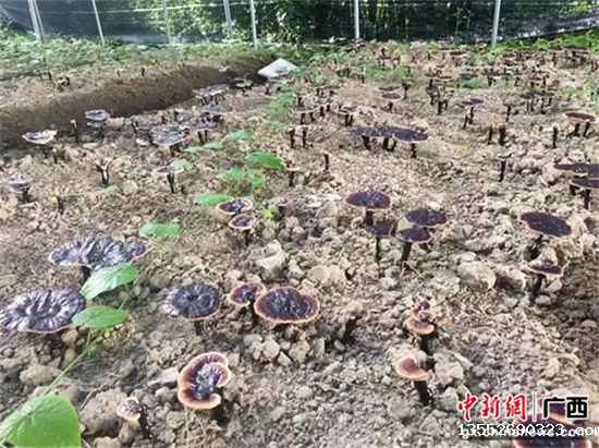 近日,广西来宾市金秀瑶族自治县长垌乡长垌村群山连绵,绿树成荫,在瑶山深处郁郁葱葱的树林之下,一棒棒褐色的灵芝整整齐齐地冒出来。眼下,正值灵芝收成的旺季。