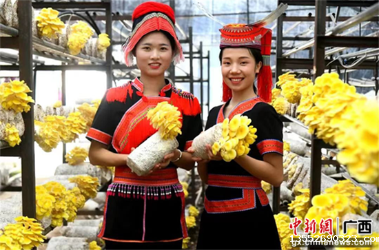长垌村金秀圣堂•村集体经济产业园榆黄菇喜获丰收。长垌村供图