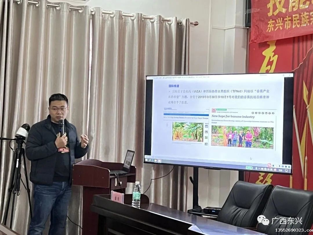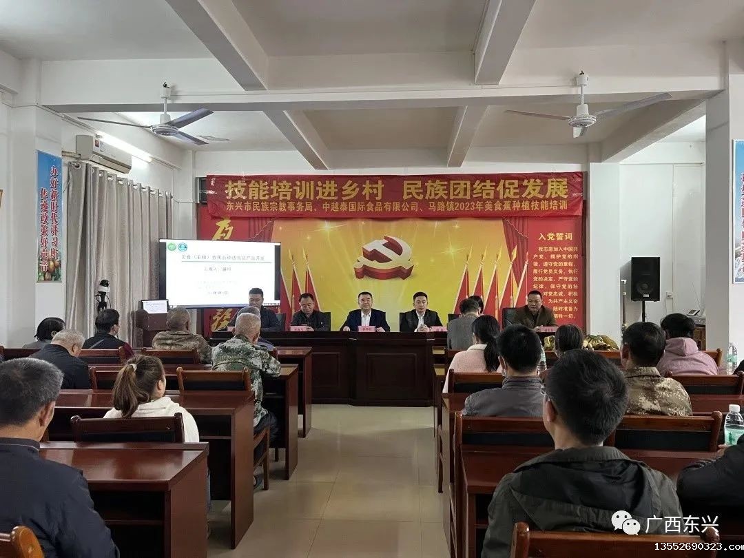 为推动边境地区的产业发展、大力培育美食蕉特色产业,3月29日,由东兴市民宗局、马路镇政府联合主办,中越泰国际食品有限公司承办的美食蕉种植技能培训班在马路镇大桥村举行,马路镇各村25名种植户参加了此次培训。