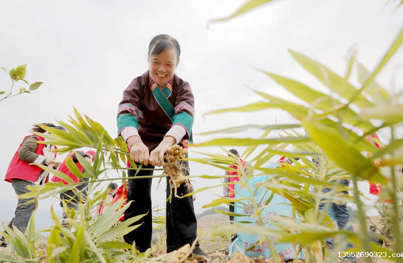 当地党员干部与农户一起在油茶基地里采收生姜。龚普康摄