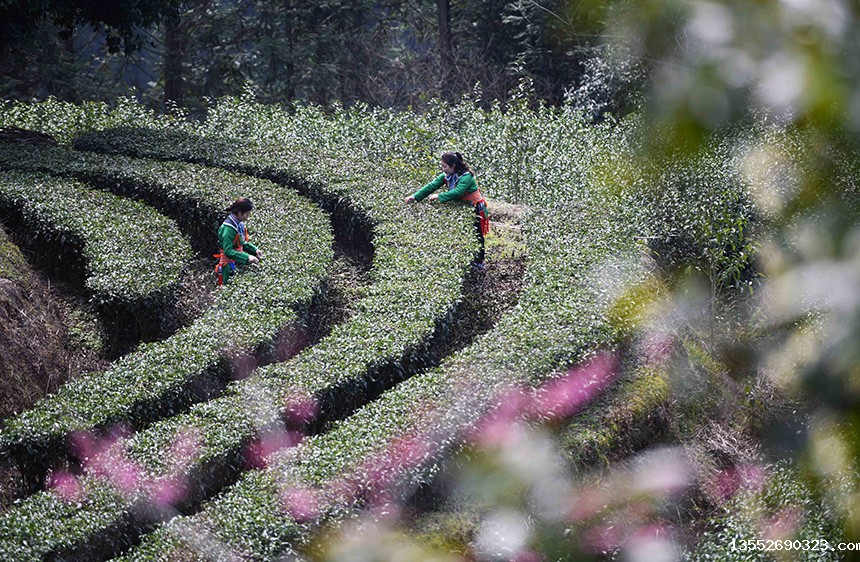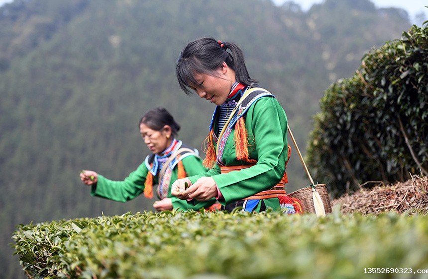时下,正值春茶采摘时节,广西桂林市龙胜各族自治县各地茶园茶叶飘香,茶农趁着晴好天气采摘茶叶。