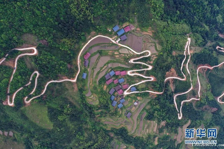 这是广西融水苗族自治县同练瑶族乡大坪村下大弄屯的通屯公路(5月12日摄,无人机照片)。