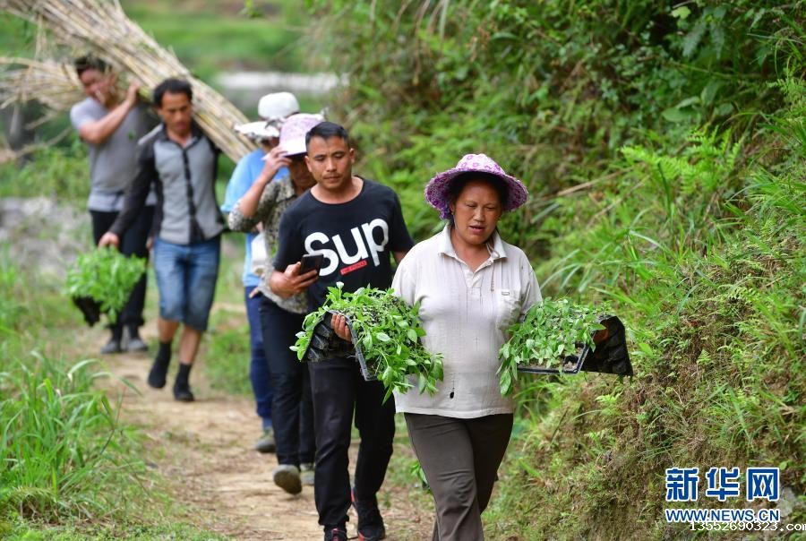 在广西融水苗族自治县同练瑶族乡如劳村,合作社的村民准备种植中药材(5月12日摄)。