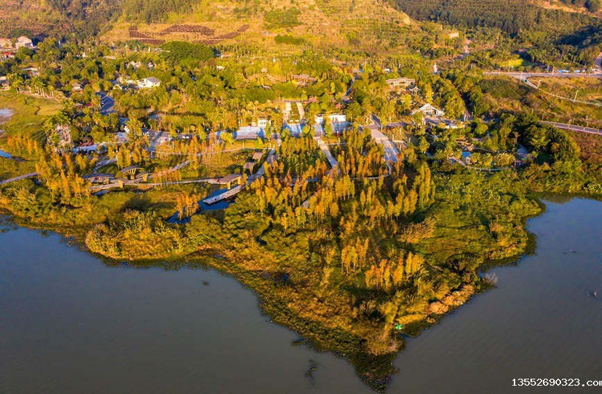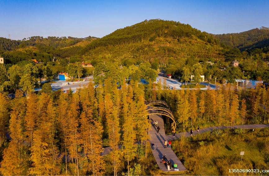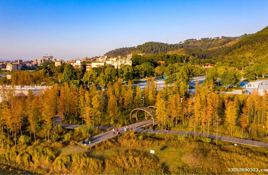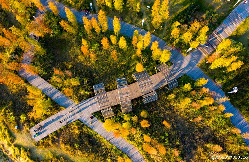 湿地公园内,层林尽染,五彩斑斓,景美如画,成为市民休闲娱乐的好去处。