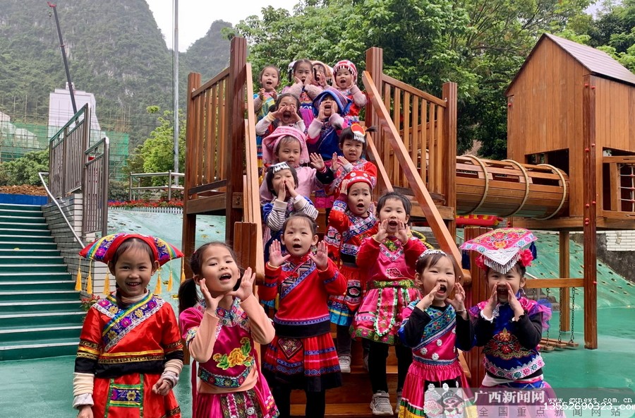 “壮族三月三“期间,河池市宜州区各幼儿园开展丰富多彩的民俗活动,引导孩子们了解壮族优秀传统民俗文化。图为宜州区第三幼儿园的孩子们在唱山歌。记者 廖庆凌 通讯员 蒙园春 摄