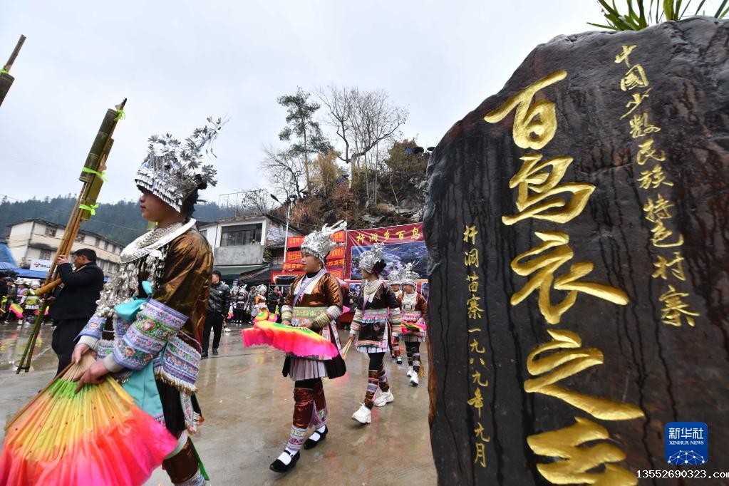 2月2日,融水苗族自治县杆洞乡党鸠村苗族同胞进行芦笙踩堂。