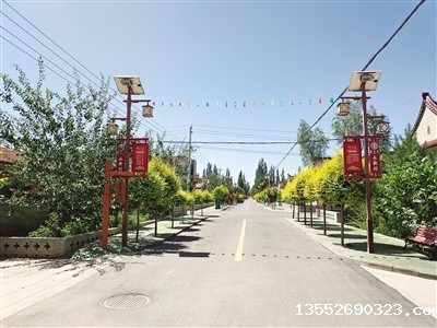 走进罗山脚下的宁夏吴忠市红寺堡区柳泉乡永新村,一栋栋红瓦白墙的民居整齐排列在村道两旁,路灯上顶着太阳能发电板,每户人家的小院种满花草,一派生机盎然的景象。