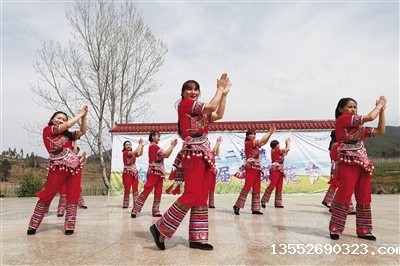 云南昆明市晋宁区二街镇响水村“油菜花节”歌舞表演。晋宁区融媒体中心供图