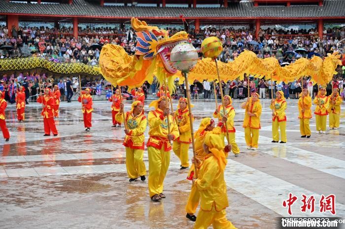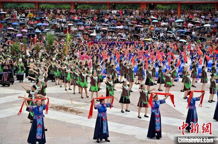 6月21日,中国唯一的毛南族自治县——广西河池市环江毛南族自治县举办传统民族节日“分龙节”。游人欢聚一堂,体验中国毛南族独具特色的民俗文化盛宴。图为分龙节祈福仪式。中新社记者 俞靖 摄