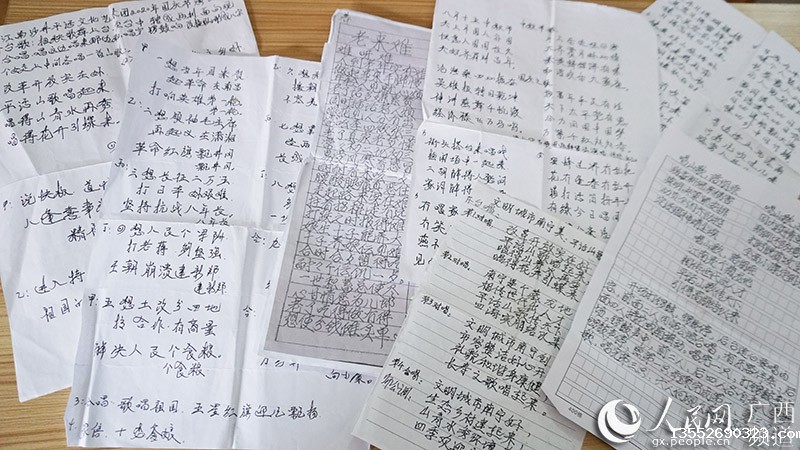 江南沙井平话文化艺术团成员以新时代为题创作的平话山歌手稿。于思琪摄
