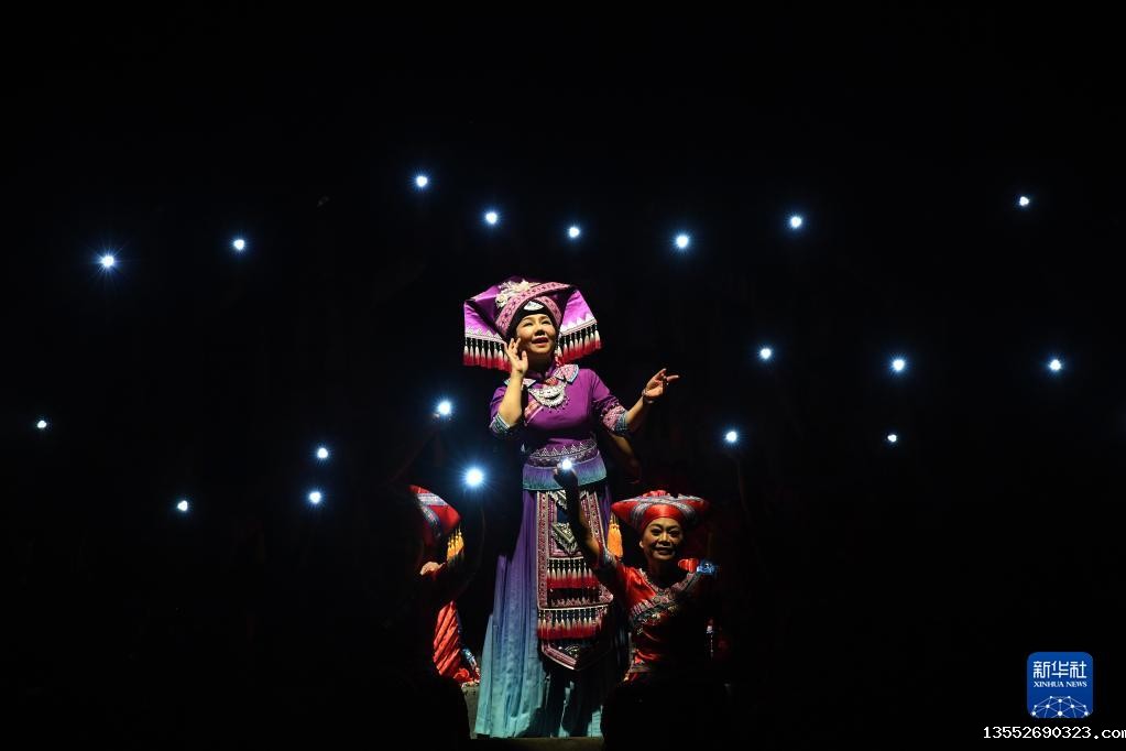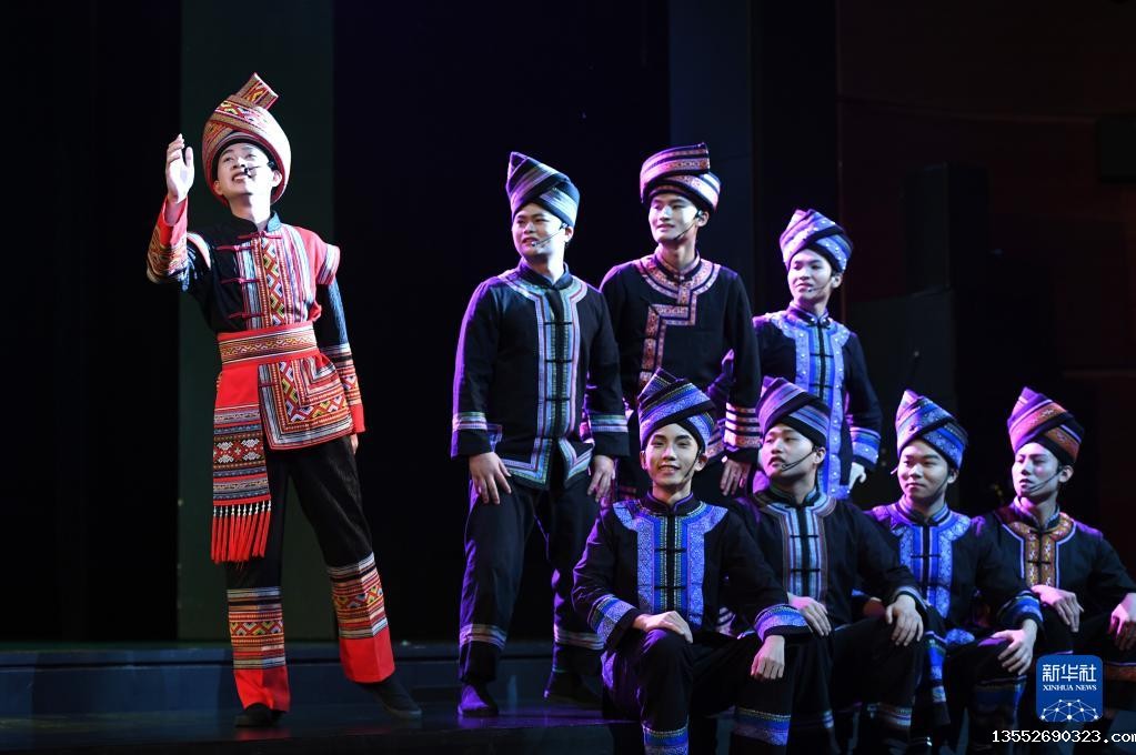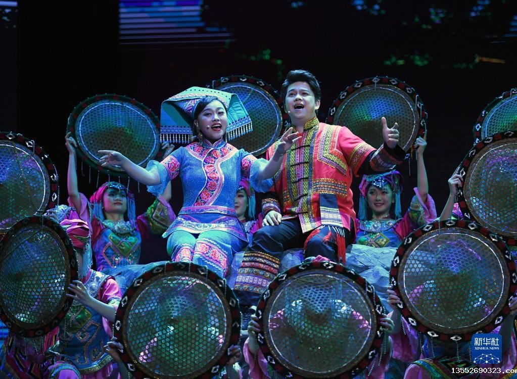 12月4日,演员在《十二天籁 壮族嘹歌》晚会上唱嘹歌。新华社记者 周华 摄