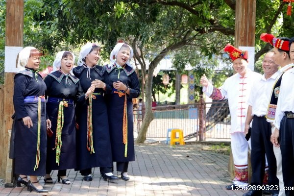 在大新县“新屯农家乐旅游”景区,大新县山歌手在参加分组山歌对唱活动中。当天是国庆长假的最后一天,该县近百名高腔诗蕾山歌手欢聚在一起,以分组对唱山歌的形式,用最甜美的歌声庆祝祖国72华诞。...