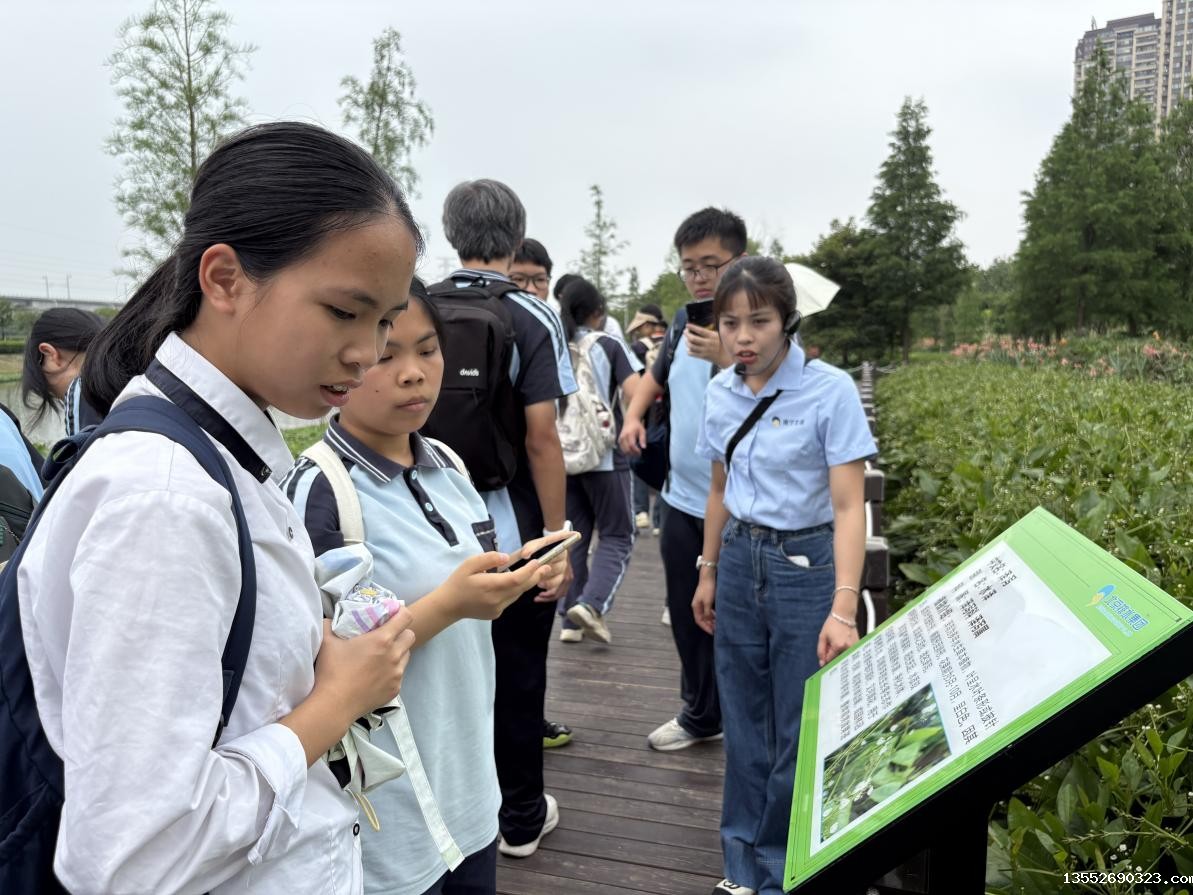 2025年5月27日下午,在劳梅娟年级组长、李俭(南宁市名师工作室主持人)、刘志红、梁浪、李香五位老师的带领下,南宁市第十三中学高二年级部分学生到那考河湿地公园开展以“探索水生态之美,践行绿色使命”为主题的研学活动。