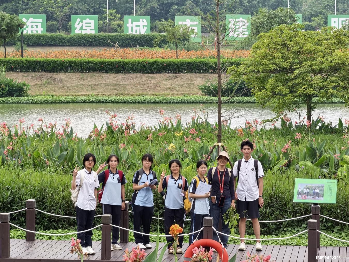 全体师生在那考河湿地公园正门合照