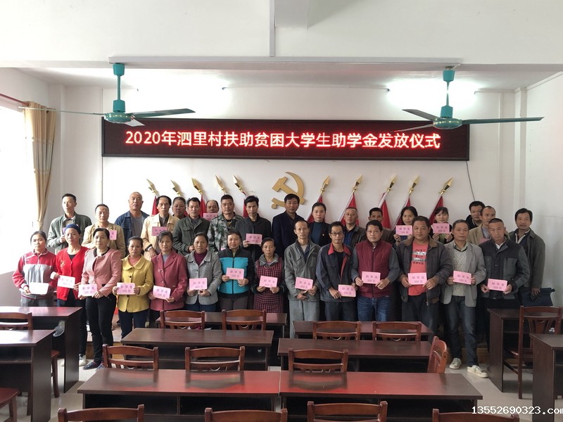 为确保每一名贫困大学生不因贫失学,坚决阻断贫困代际传递,当天,程村乡泗里村利用一部分村集体经济收入扶助全村在读大专以上的37名优秀贫困大学生,其中建档立卡贫困户大学生一次性奖励600元,非建档立卡贫困学生一次性奖励500元,研究生奖励600元。