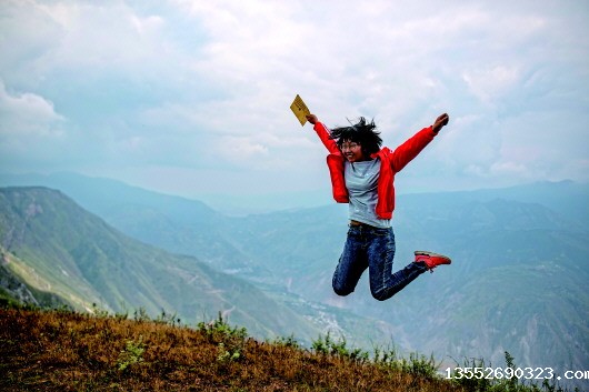今年高考理科644分的会泽县考生范天兰,拿着通知书开心得蹦起来。(9月8日摄)记者江文耀摄
