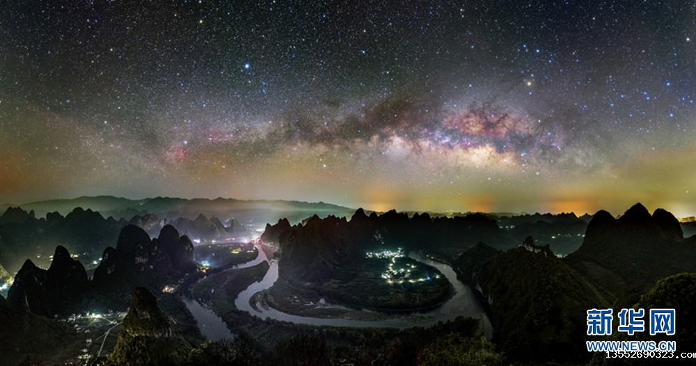 夜空下群峰逶迤,漓江穿行其中,如梦如幻。王晋 摄