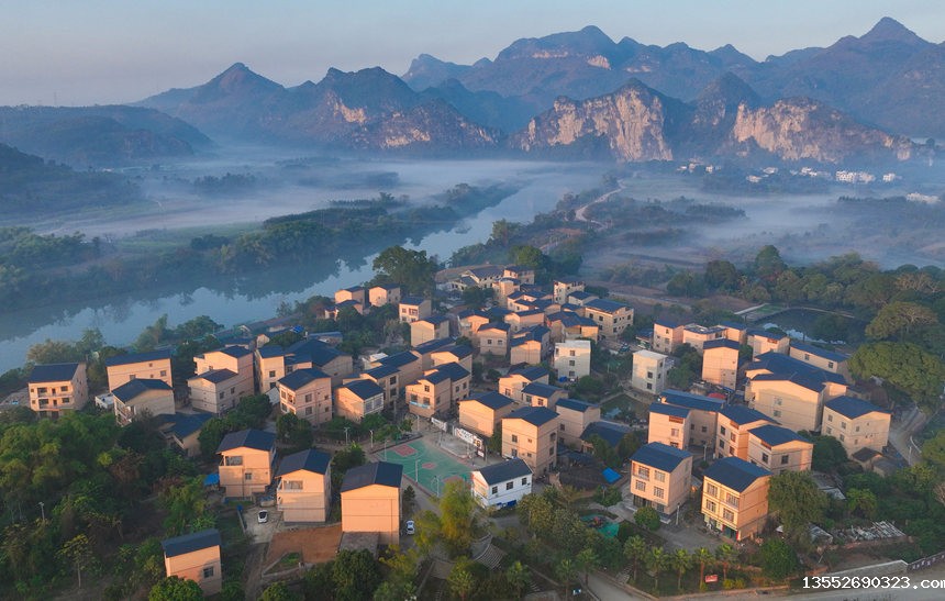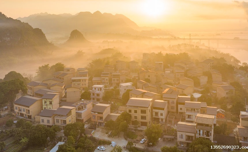 广西兴业:晨雾缭绕 群山宛如水墨画