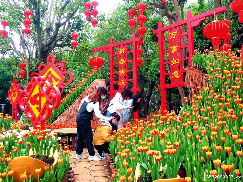 同时,在郁金香花海中穿插布置6组园林小品,包括“福牛迎春““科技强国““乡村振兴““和谐社会““文化强国““喜迎‘十四五’“。