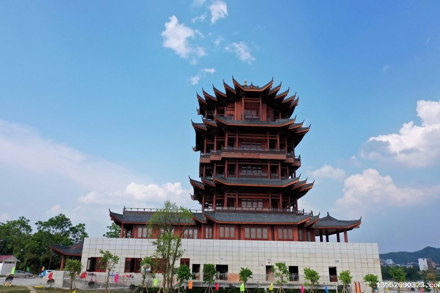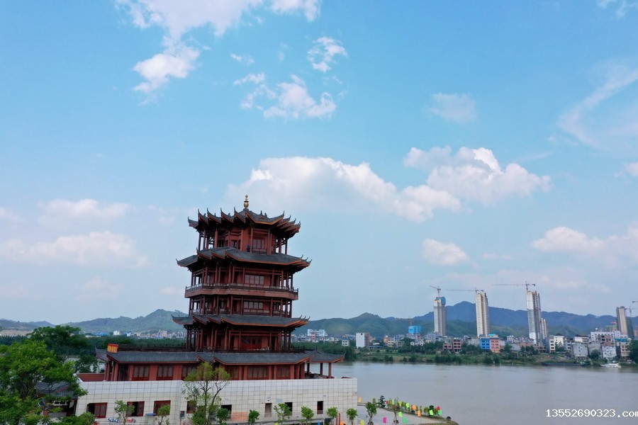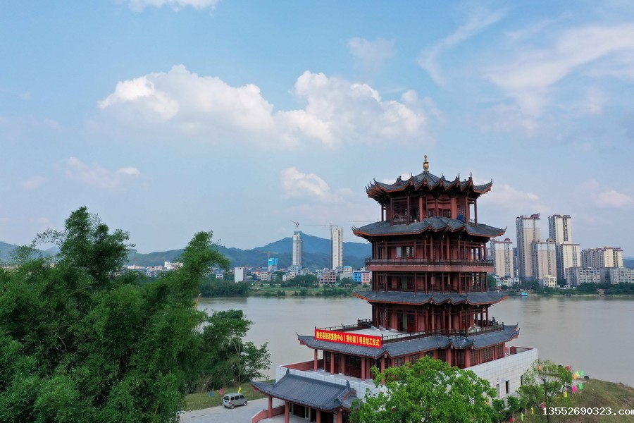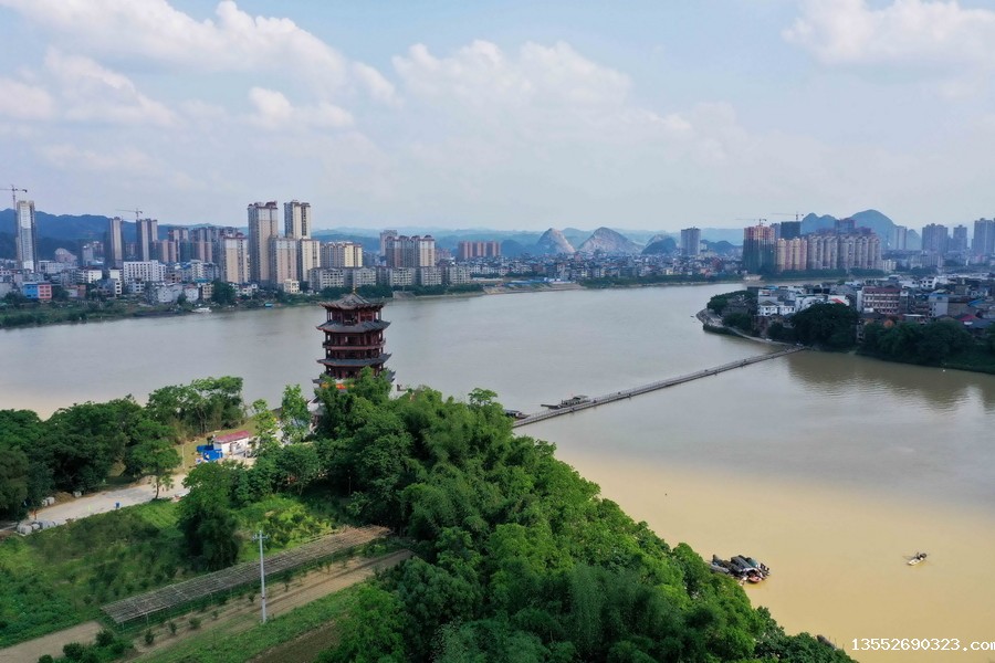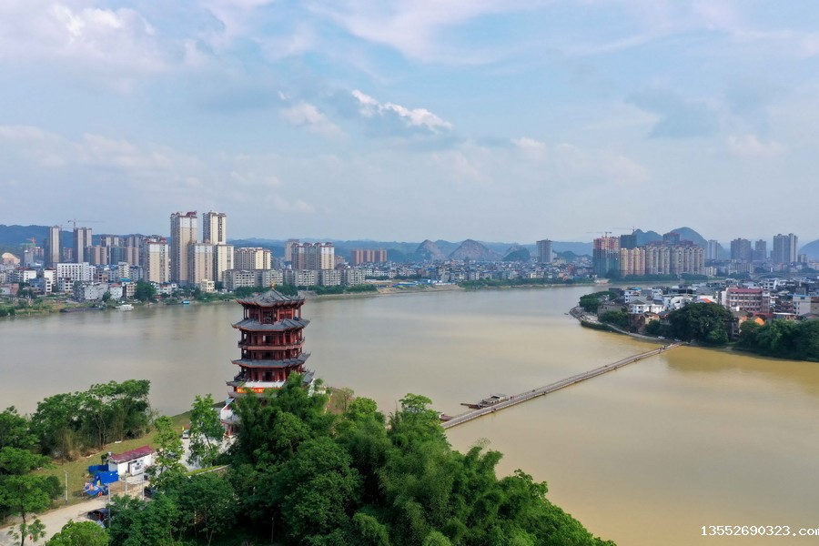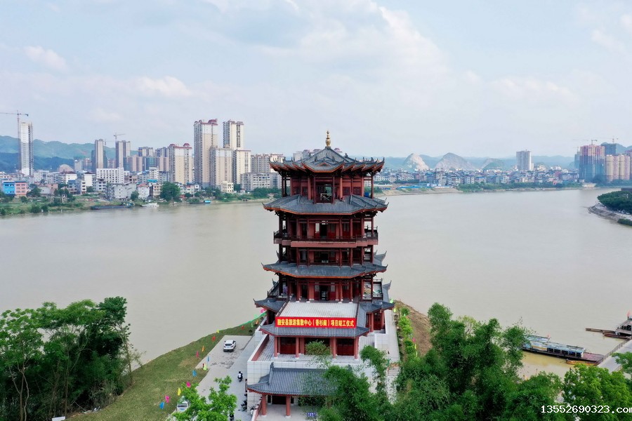 5月11日,在柳州市融安县长安镇大洲村航拍的地标仿古建筑香杉阁。日前,柳州市融安县旅游集散中心(香杉阁)竣工,该建筑为仿古亭式结构,主楼建筑面积2200平方米,位于柳州市融安县长安镇大洲村。该建筑补齐了融安县旅游集散中心缺失的短板,成为文化旅游的发展、乡村振兴的推进注入新的动能与活力,是当地的文化旅游地标式建筑。(谭凯兴 摄)