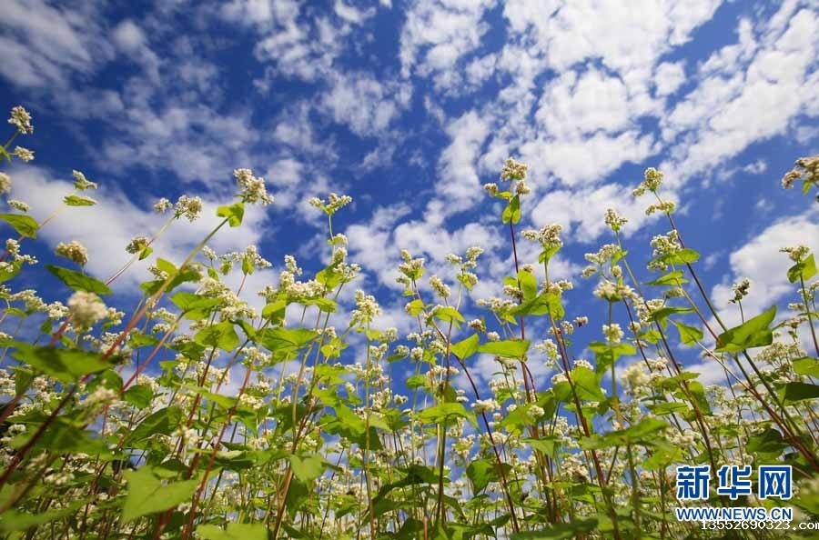 在柳州市柳城县古砦仫佬族乡独山水库库区,荞麦花迎风绽放;