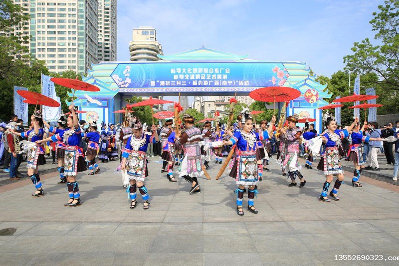 活动现场。杨忠钰摄为打响广西“壮族三月三”民族节庆品牌,进一步展示桂鄂两省(区)特别是广西(南宁)少数民族地区文化和旅游的独特魅力,4月8日,桂鄂文化旅游联合推广会、桂鄂非遗精品艺术展演暨“潮玩三月三·相约游广西(南宁)”活动在湖北省武汉市汉口江滩举行。本次活动由广西壮族自治区文化和旅游厅、湖...
