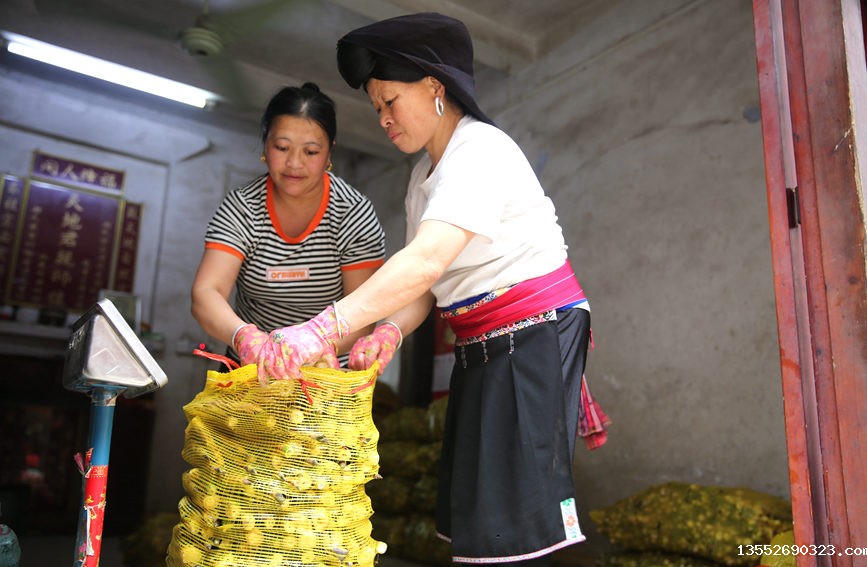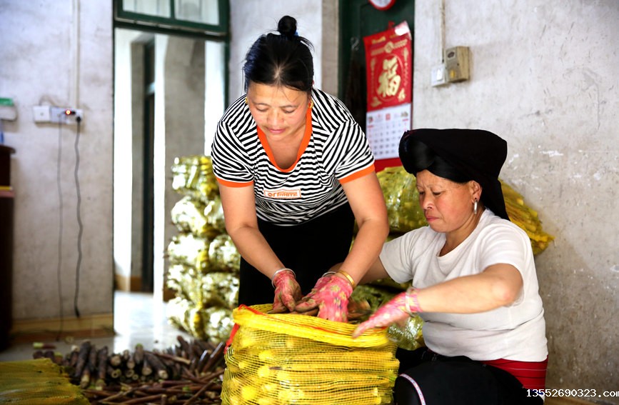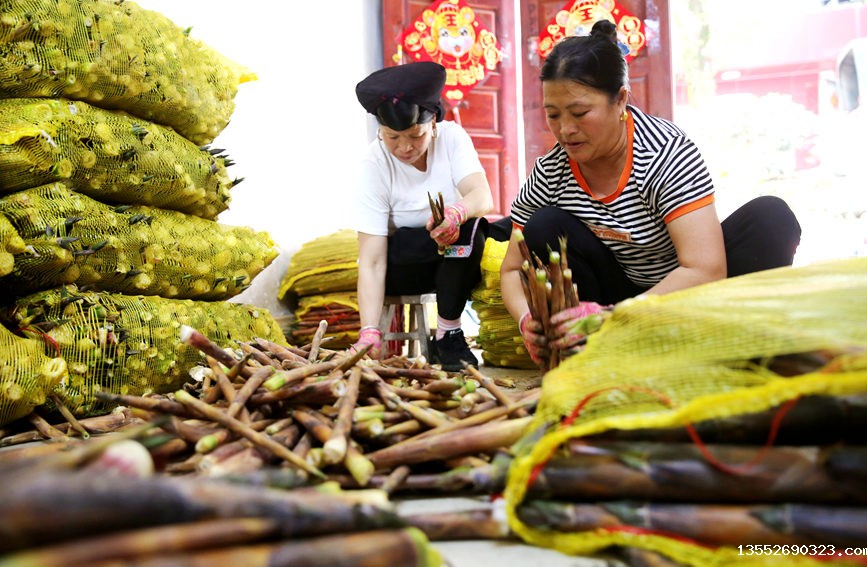 两名妇女正在挑选竹笋装袋。潘勇干摄