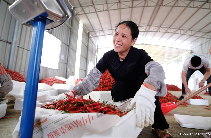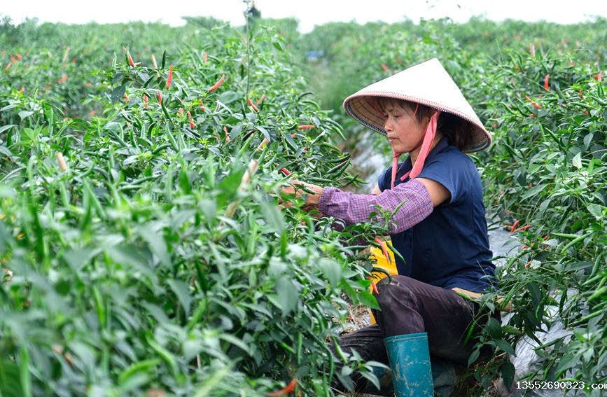 现在,每天有500余人到园区内采摘辣椒,采摘辣椒1元/1斤,工人的收入少则100元,多则200元以上,带动了周边村民就业增收。