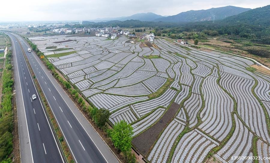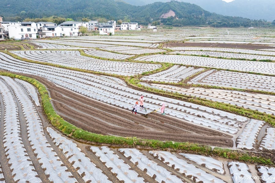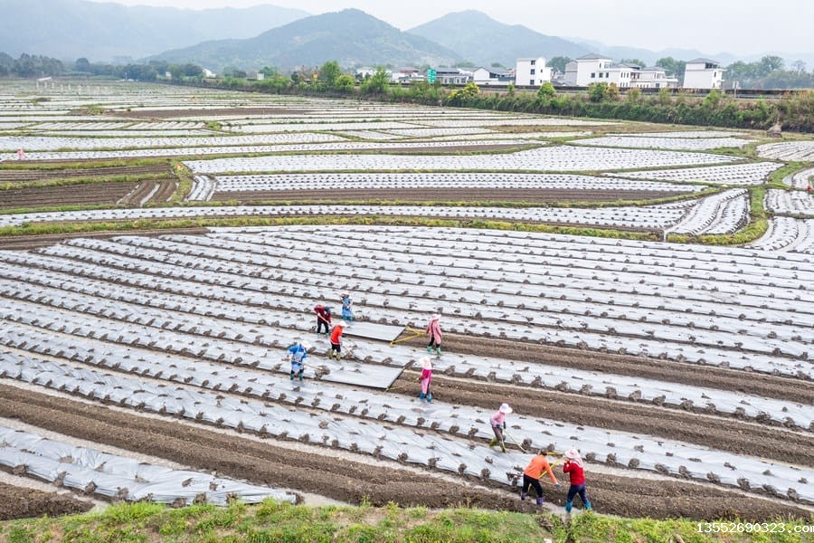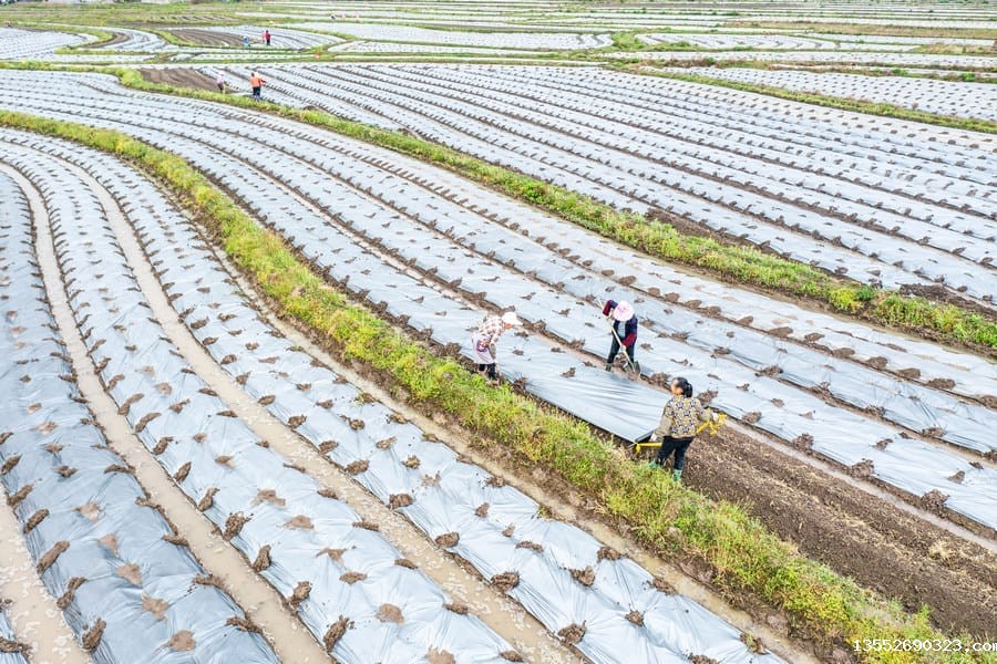 连日来,在广西贺州市钟山县凤翔镇新栗村委东林村,芋农们在香芋种植基地里忙着覆盖地膜。放眼望去,连片的香芋田仿佛被镶上串串银链,构成了一幅生机勃勃的春耕画卷。