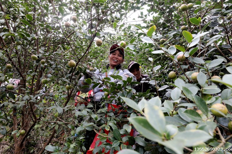 10月21日,三江侗族自治县斗江镇思欧村宇塘油茶示范基地油茶树挂满果