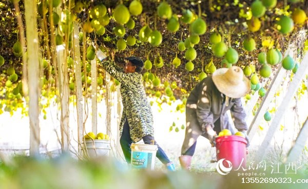 人民网南昌12月5日电 (毛思远)12月2日,江西省新余市仙女湖区河下镇平川村瓜蒌种植基地,农户忙着采摘、加工、晾晒收获的瓜蒌。近年来,新余市通过调整农产品种植结构,流转土地规模化发...