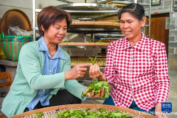 12月10日,卢花暖(左)为本村茶农讲解茶叶的筛选标准。 12月10日,卢花暖冲泡自己制作的红茶(拼版照片)。 12月10日,卢花暖(左一)和其他茶农一起包装待售成品茶。 12月10日,卢花暖(左)和同伴一起直播卖茶。 12月10日,在蓬塘村白雪塘党支部党员大会上,卢花暖(站立者)在发言。 12月10日,卢花暖(右)和茶农...