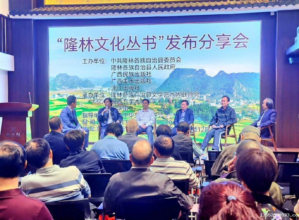 “隆林文化丛书”发布分享会在南宁举行。凌冬摄人民网南宁3月19日电 (记者伍迁)3月19日,为庆祝隆林各族自治县成立70周年创作推出的“隆林文化丛书”发布分享会在南宁举行。该丛书多角度、全景式地聚焦被誉为“活的少数民族博物馆”——隆林的生态之美、文化之美和社会之美,让人看到隆林丰厚的文化内涵和独具特色的人文之...