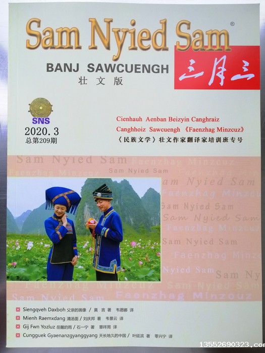 为让壮文读者共享中国当代文学最新成果,激励壮文作家翻译家的创作热情,近日,《民族文学》壮文作家翻译家培训班专号(Cienhauh Aenban Beizyin Canghraiz Canghhoiz Sawcuengh 《Faenzhag Minzcuz》)由广西三月三杂志社在《三月三》壮文版2020年第3期出版。