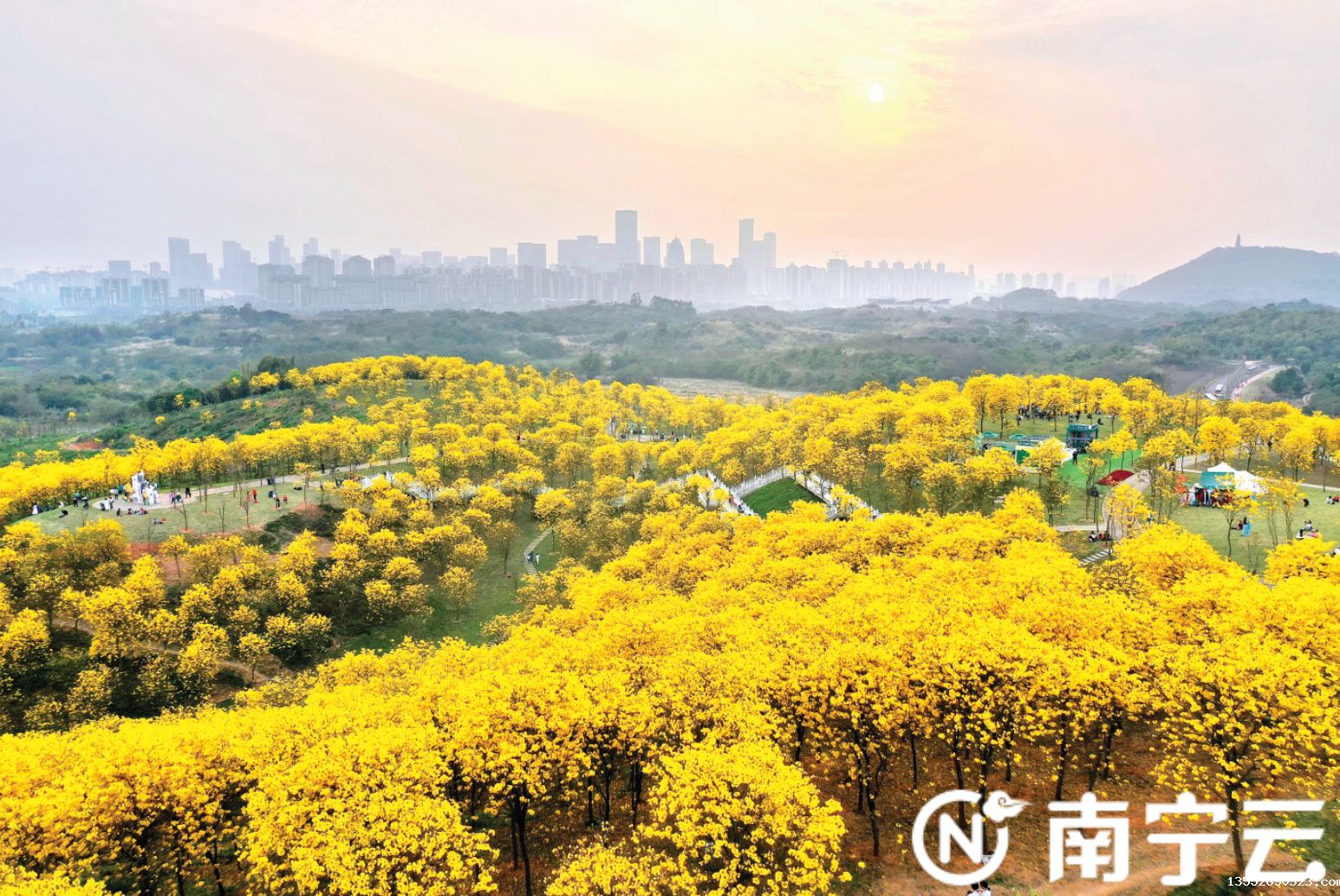 青秀山风景区黄花风铃木花海。 记者 宋延康 摄