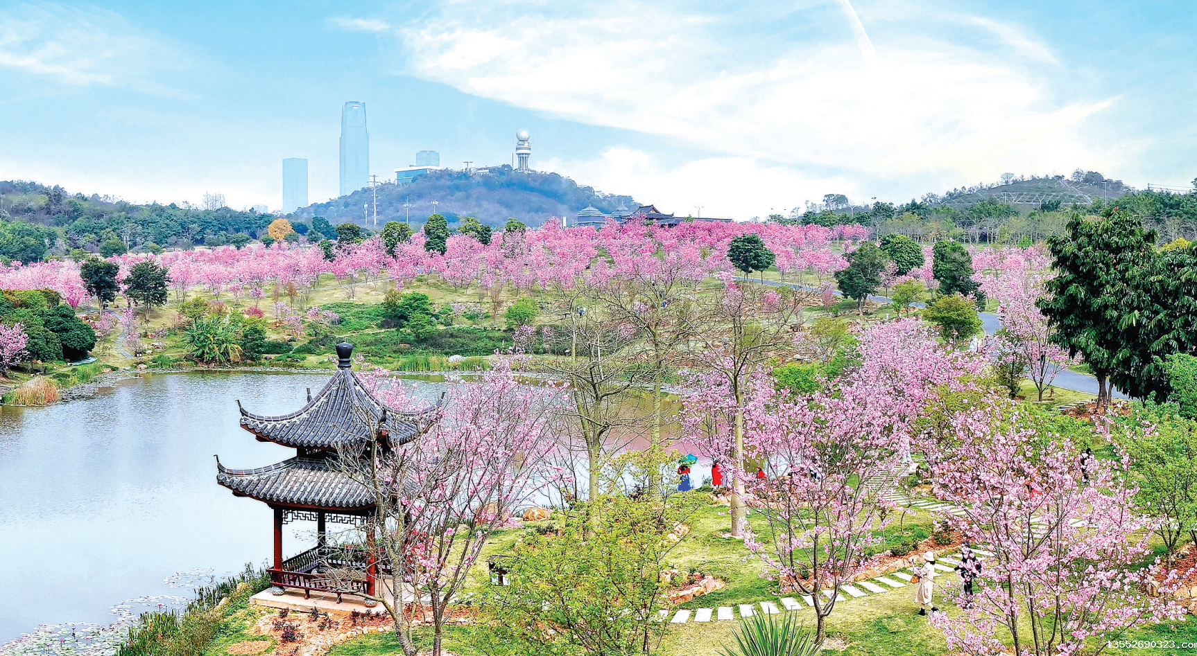 在青秀山风景区,如云似霞的樱花盛放在青山绿水间,游人闲绕花行,感受春的浪漫;黄花风铃木也迎来了花期,风铃状的黄花团团簇簇压满枝头,为绿城风景添上一抹明艳亮丽的黄,令赏春的人心情格外明媚;“人面桃花相映红“,盛放的桃花吸引众多游客前来拍照留念。