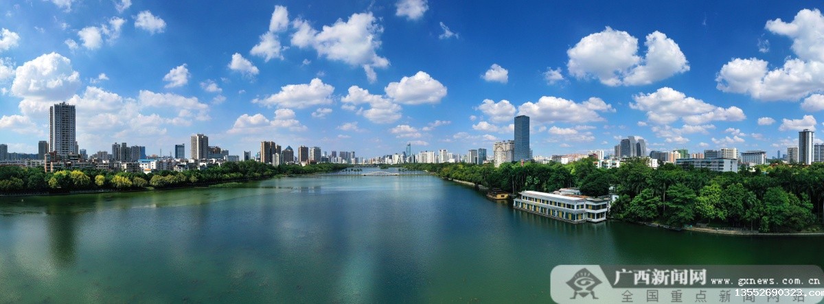 连日来,首府南宁市气温高,蓝天白云却是一年之中最美的时刻。在蓝天白云之下的城市,南湖成了映衬的“天空之境”、绿色蜿蜒的邕江穿城而过,成为一幅醉人的画卷。