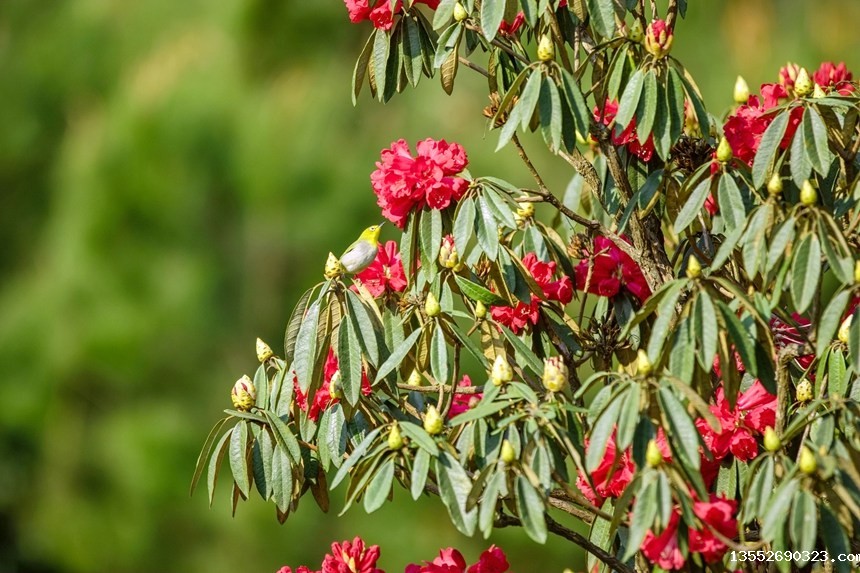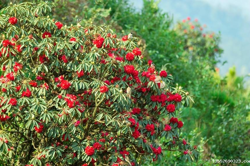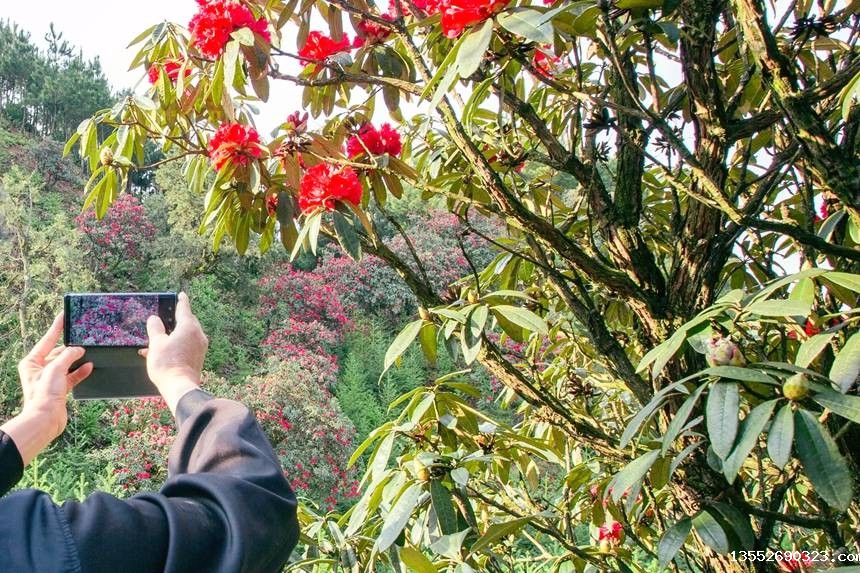 人民网西林3月20日电 暖春三月,百花争艳。在广西西林县最高山峰王子山上,火红的杜鹃花竞相绽放,漫山遍野鸟语花香,自然美景,令人陶醉。(王勇、李世华)