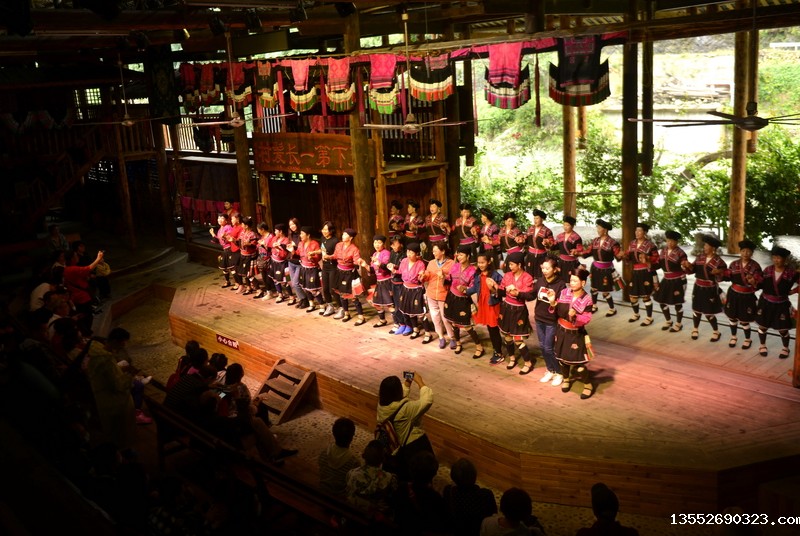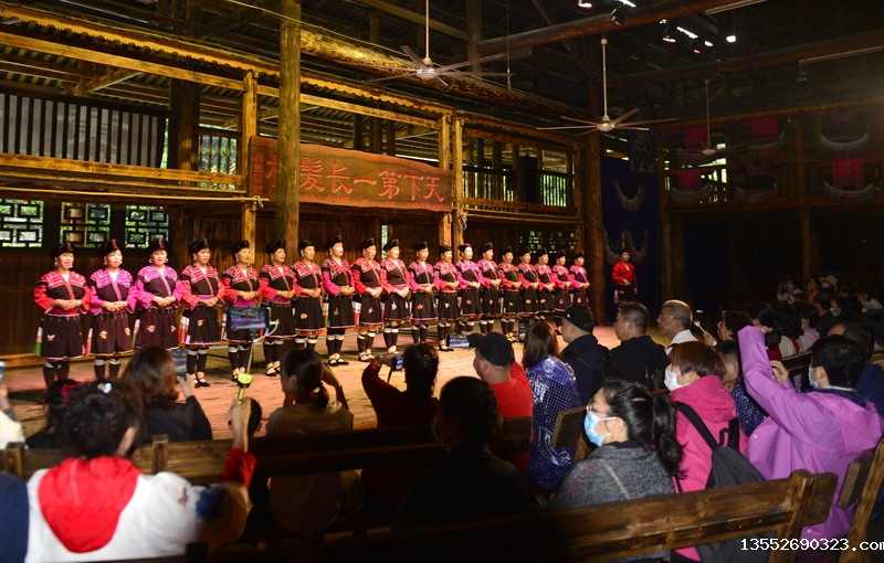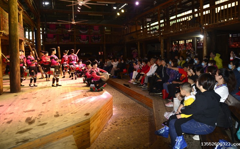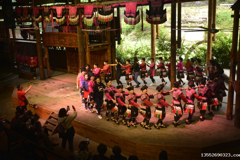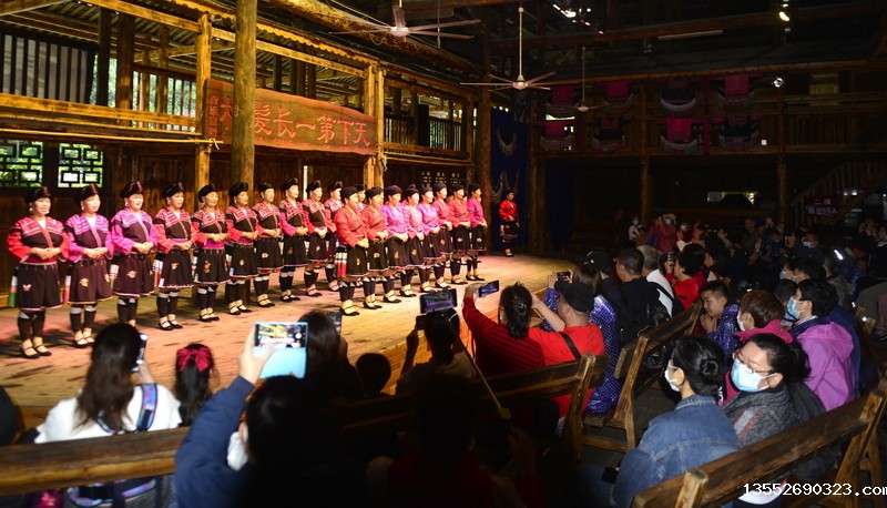 9月26日,在龙胜各族自治县龙脊镇黄洛瑶寨歌舞场,游客在观看民俗表演。 近日,龙胜各族自治县龙脊镇龙脊梯田景区迎来旅游旺季,赏梯田、品民俗、看长发歌舞表演的旅游路线深受广大游客青睐,每天吸引众多游客前来观赏体验。