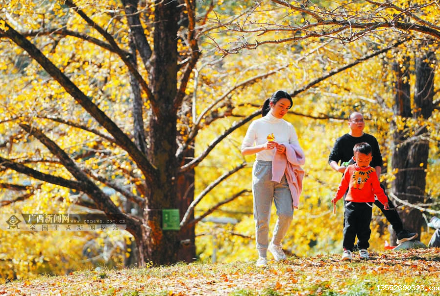 孩童在银杏林里嬉戏。广西新闻网-广西日报记者李家健 通讯员 黄勇丹摄