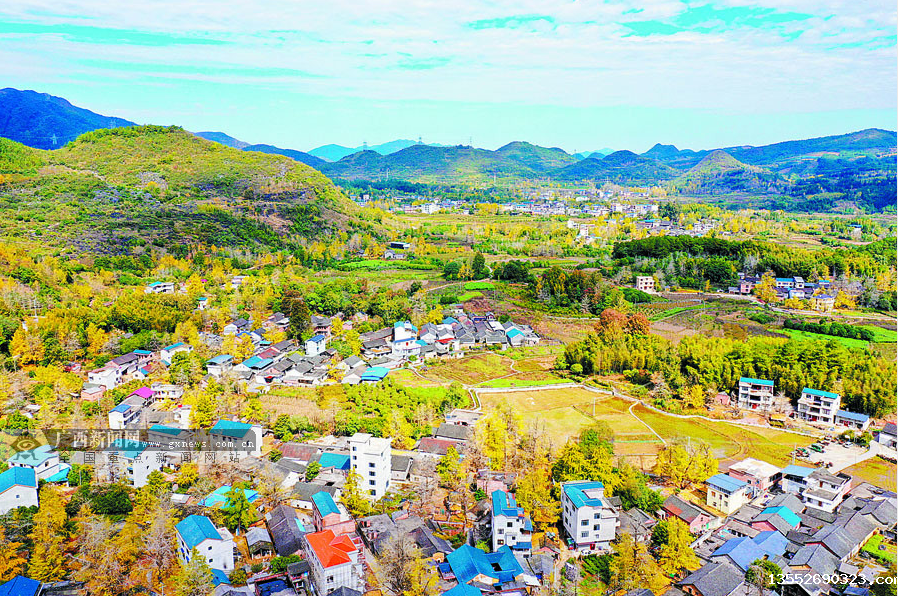 漫山遍野的银杏与错落有致的民居相映成趣。(记者李家健 通讯员黄勇丹摄)