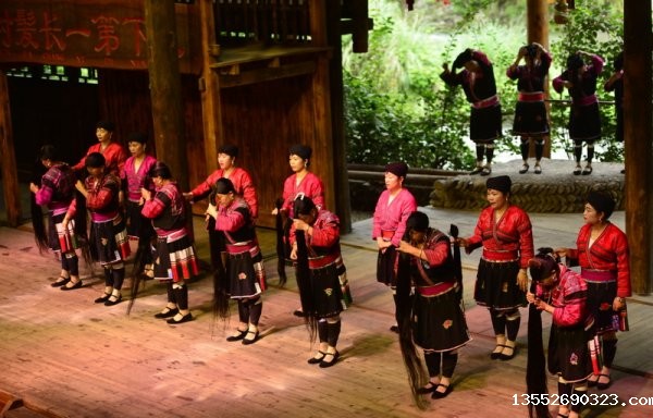 9月26日,在广西桂林市龙胜各族自治县龙脊镇黄洛瑶寨歌舞场,瑶族群众在表演长发梳妆 9月26日,在广西桂林市龙胜各族自治县龙脊镇黄洛瑶寨歌舞场,瑶族群众在表演长发梳妆 9月26日,在广...